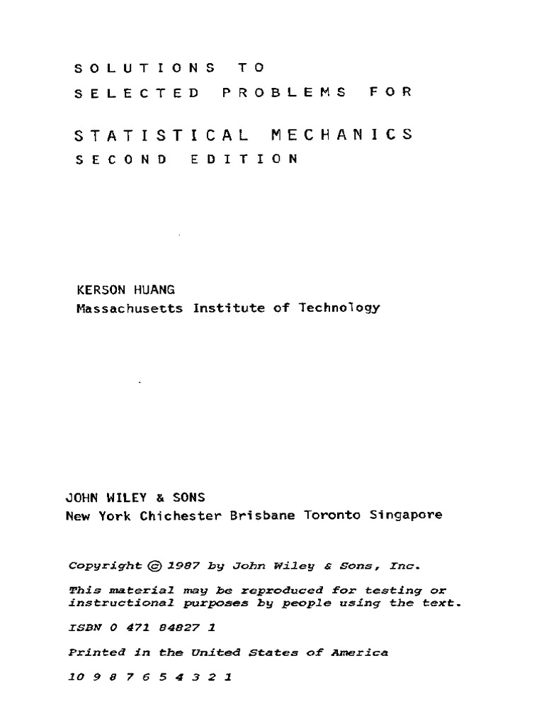 Norma Faris Hubele solutions manual to Engineering Vibration 3rd Ed by Inman. Transport coefficients are first derived from basic laws. Equilibrium Statistical Physics 2nd Edition - Solutions Manual.